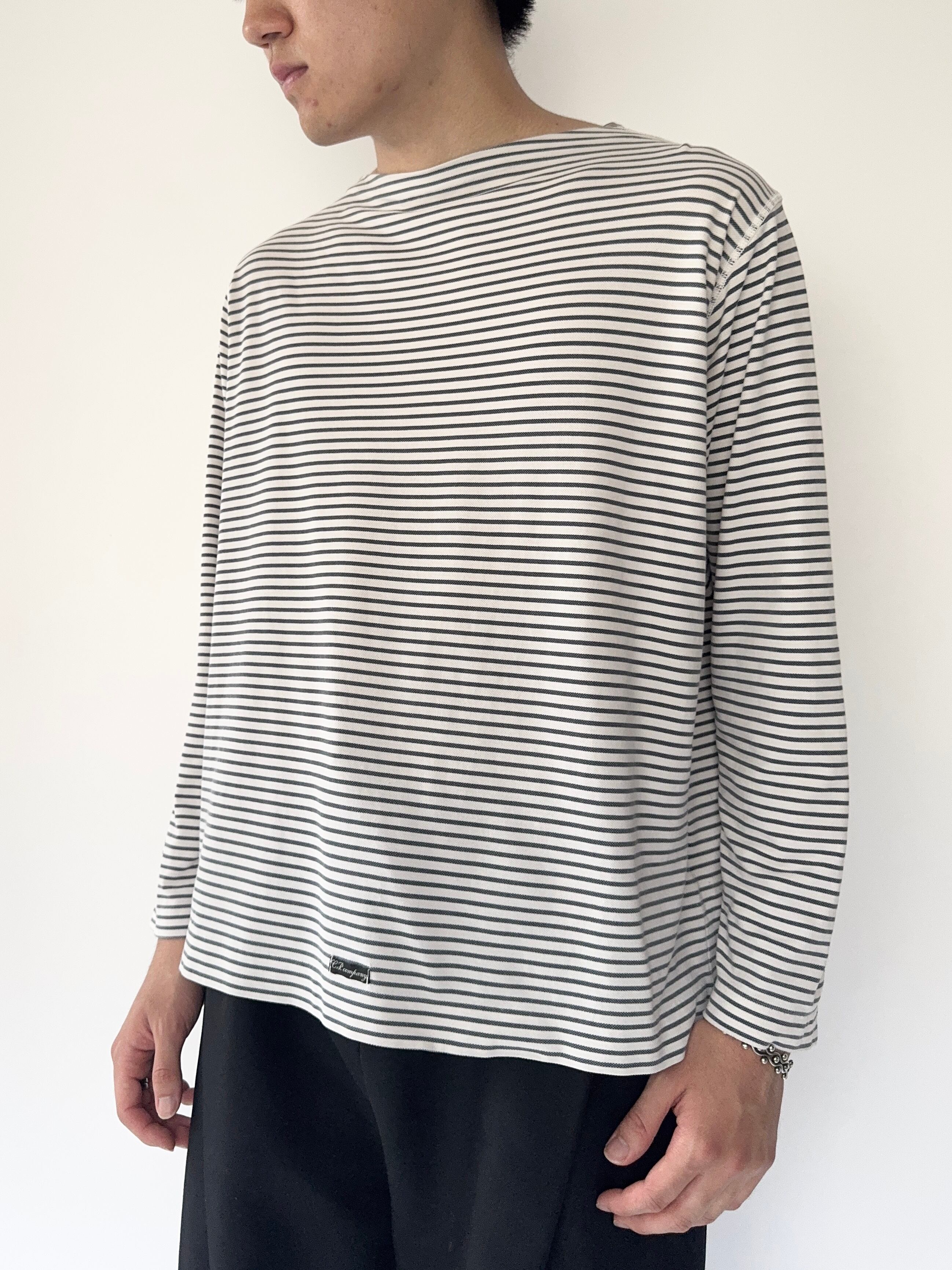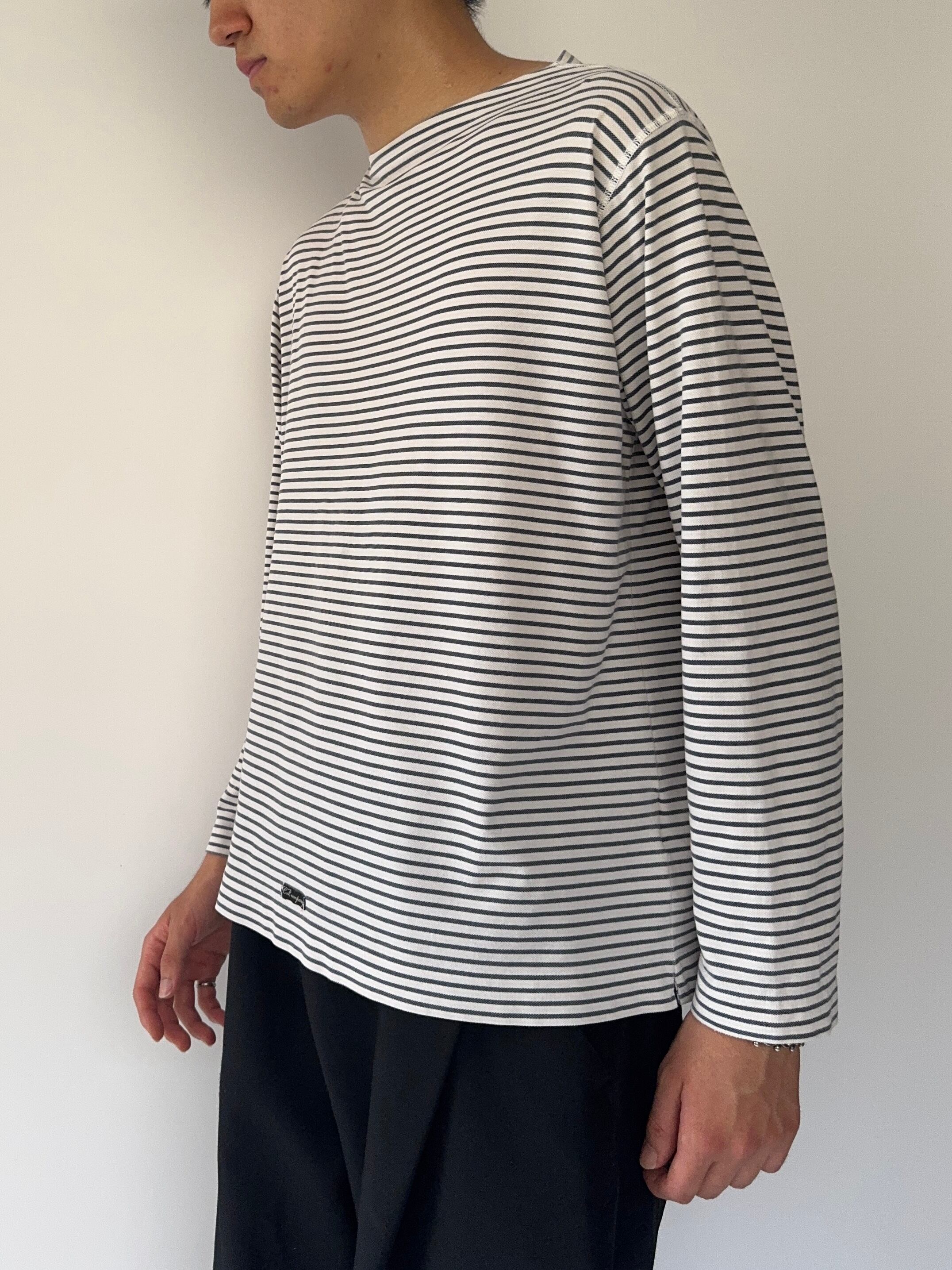襟元は珍しいボートネック仕様で、カジュアルながらも上品な雰囲気を演出できます。