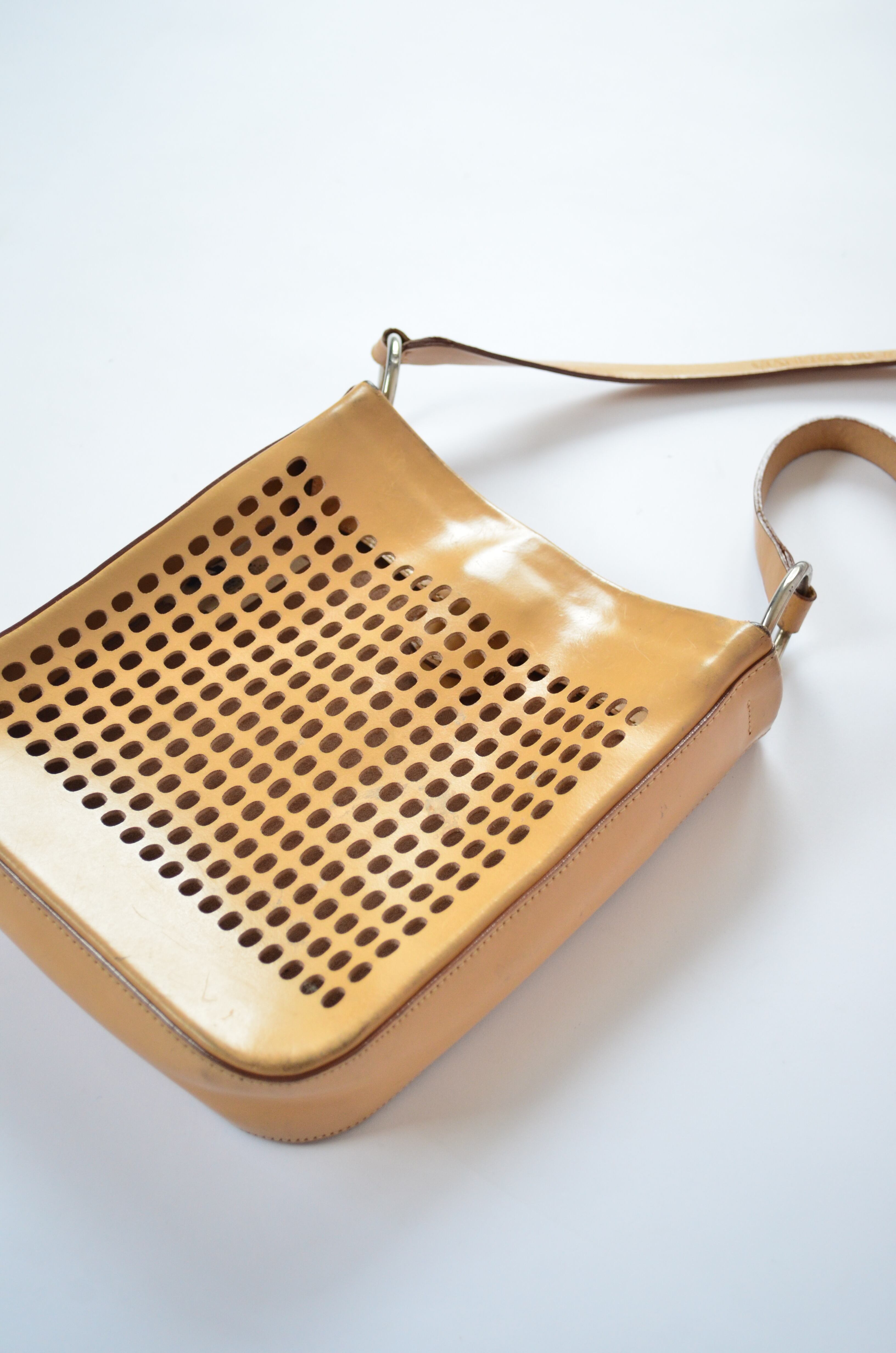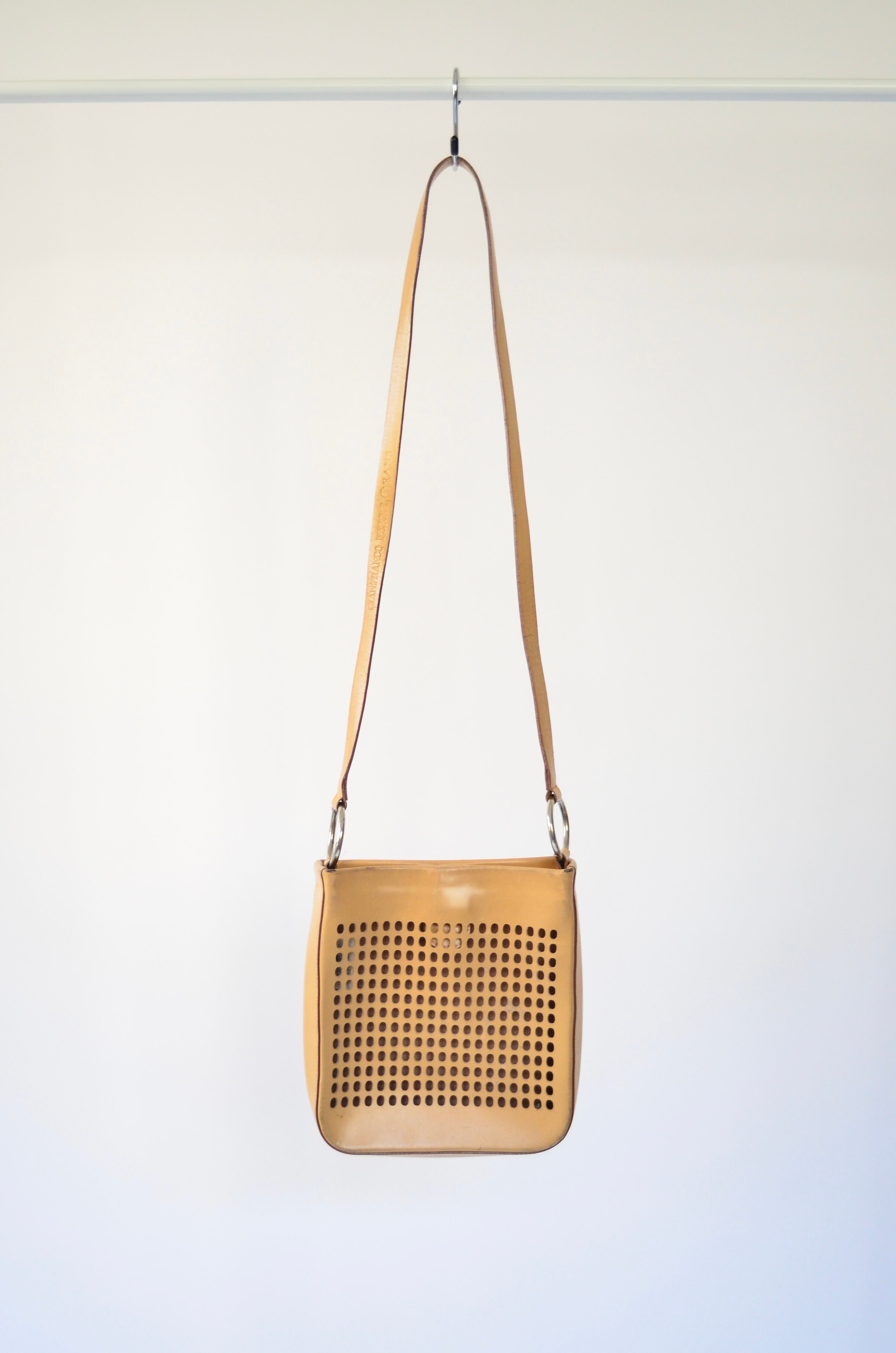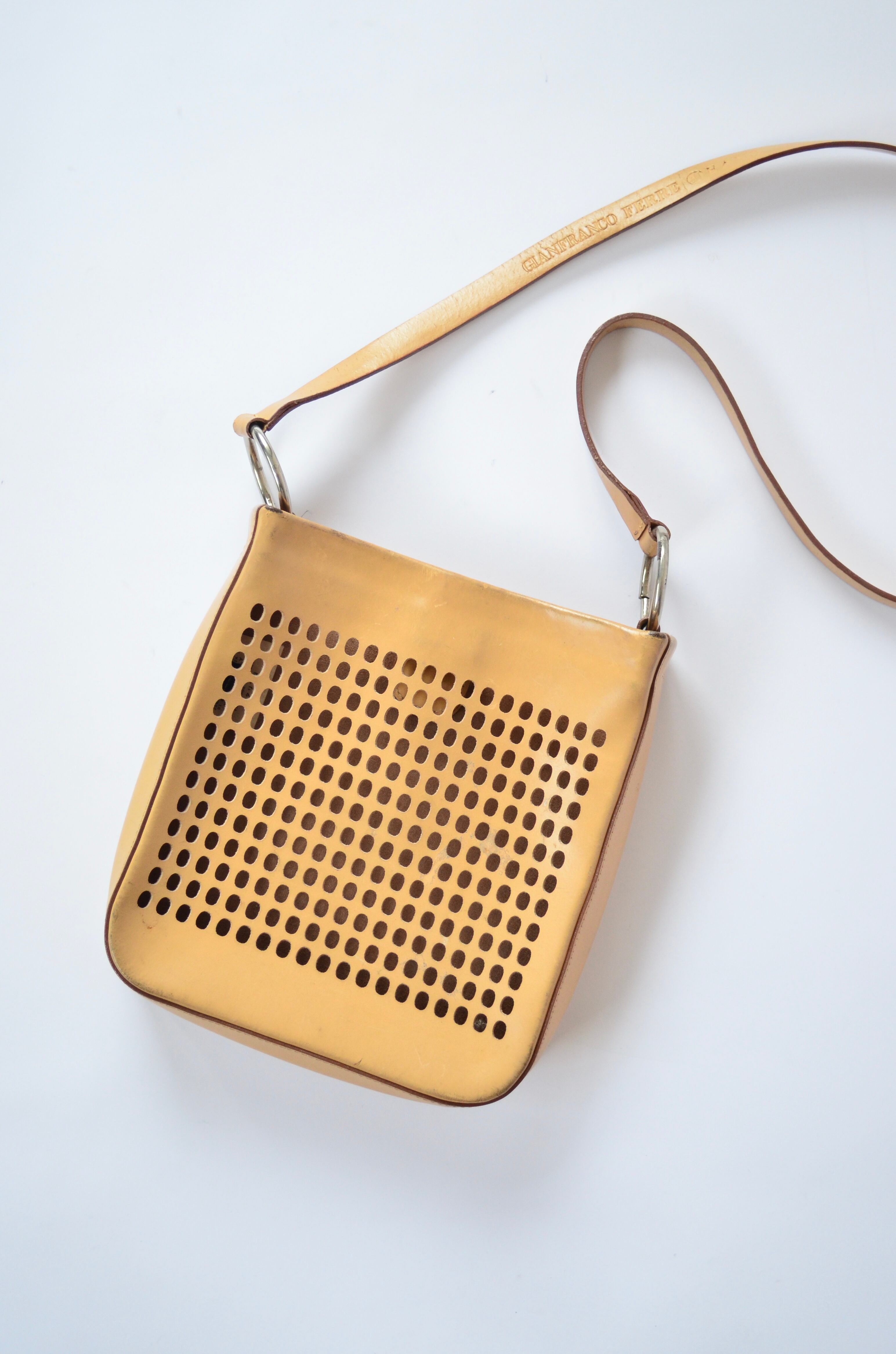 Late 1990s GIANFRANCO FERRE JEANS Perforated Leather Shoulder Bag
