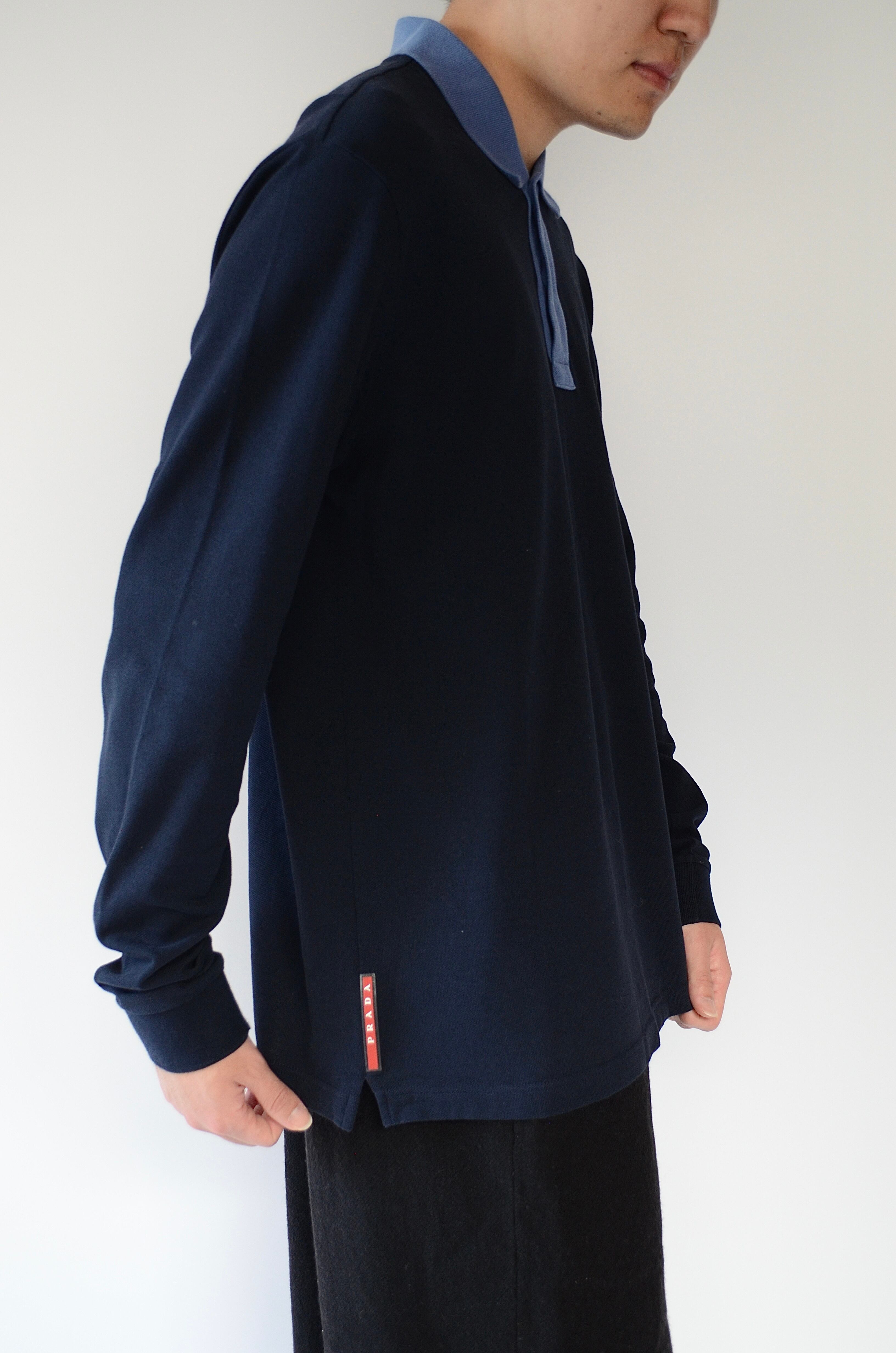 PRADA Contrast Collar L/S Polo Shirt