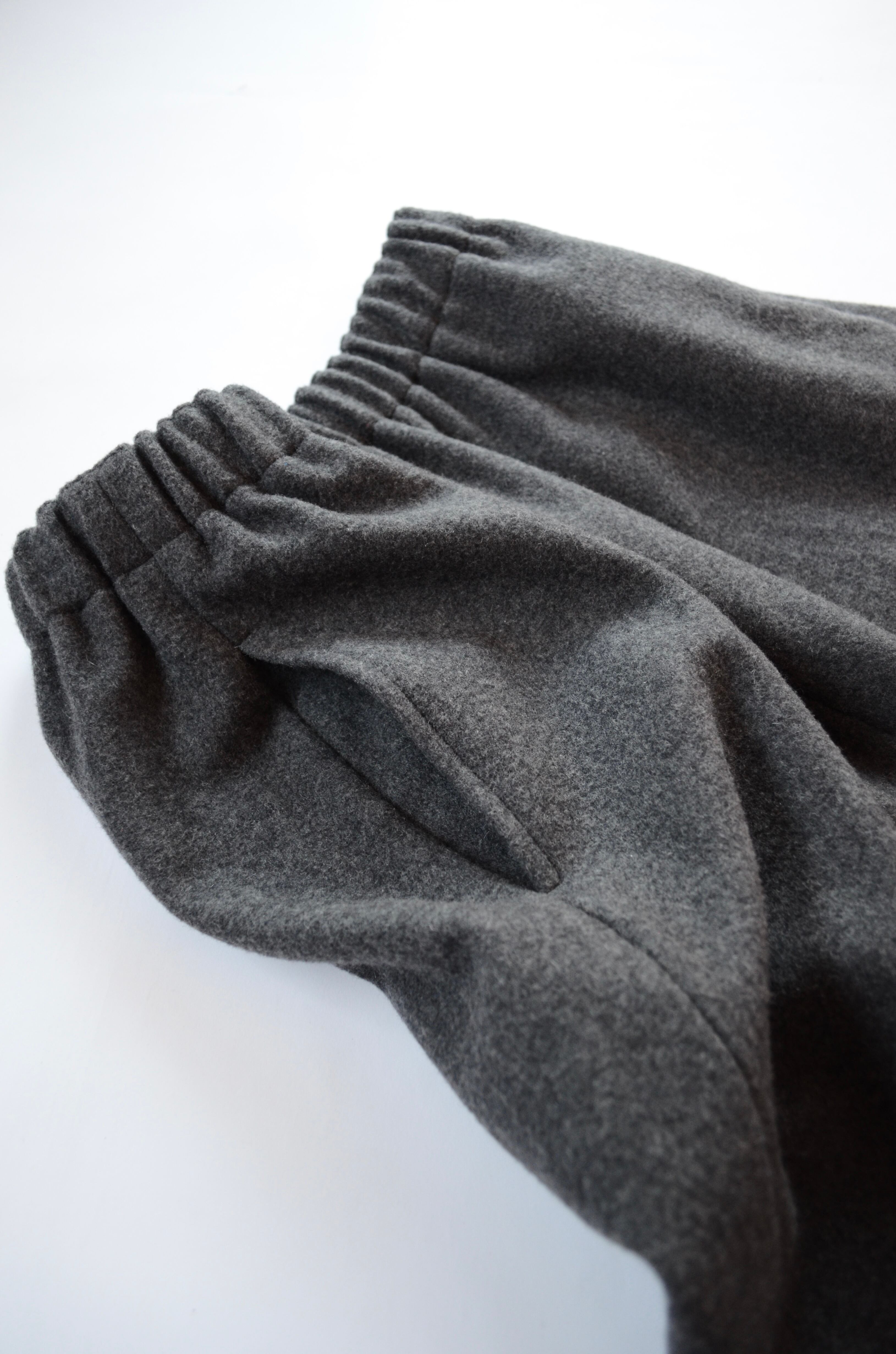 しっとりとした重厚感あるウールから成るサルエル。