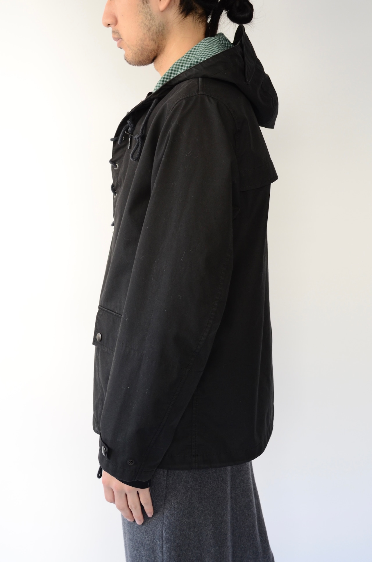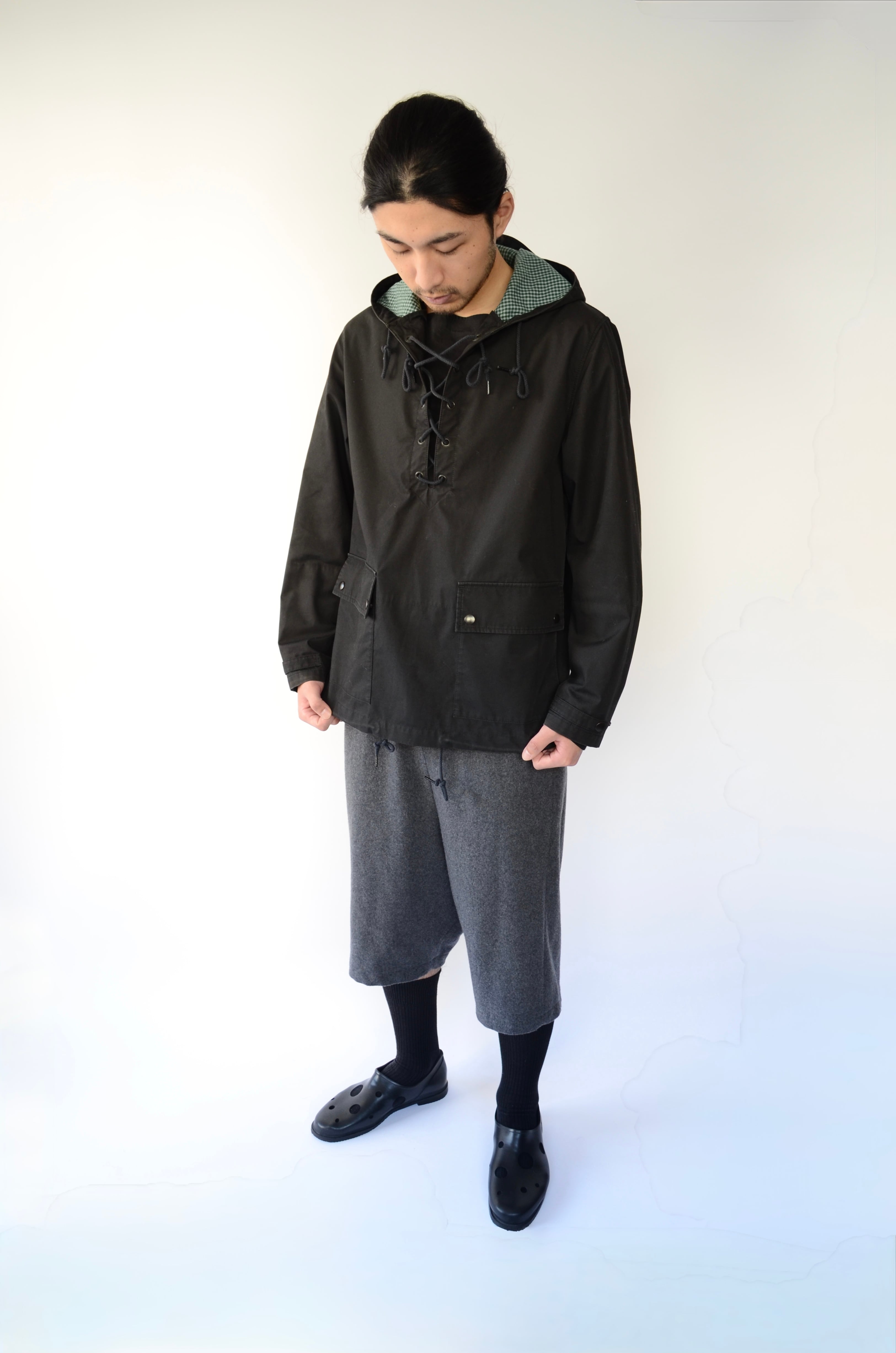 ミリタリーサンプリングから得たデザインのアノラック。